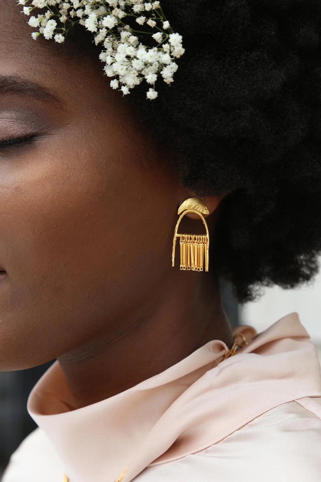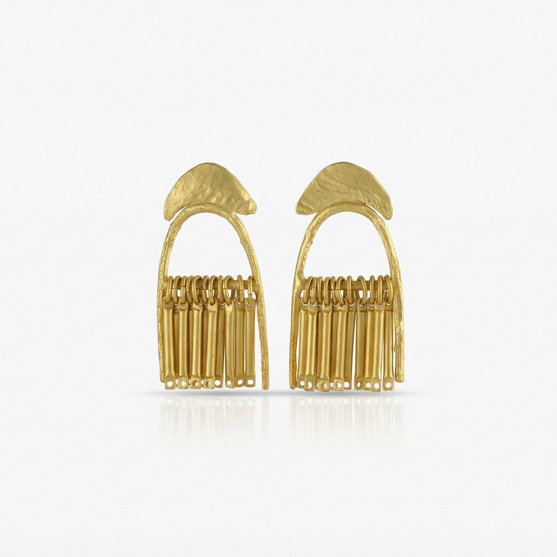 Crafted from machine-made steel chain, plated in 22k gold, and acid-etched for a bold finish, these earrings showcase a classic link design with an organic feel. Suspended from French earwires for added movement, they offer a versatile and striking style that complements any outfit.